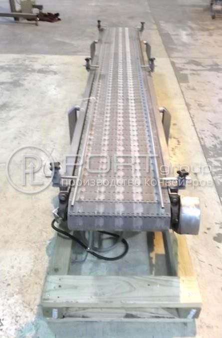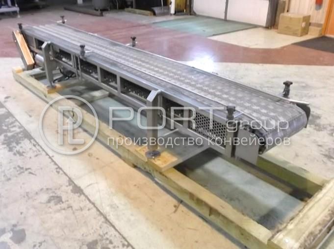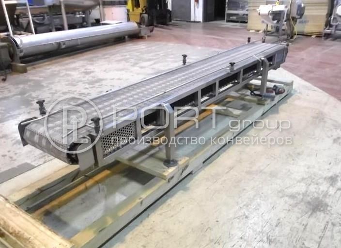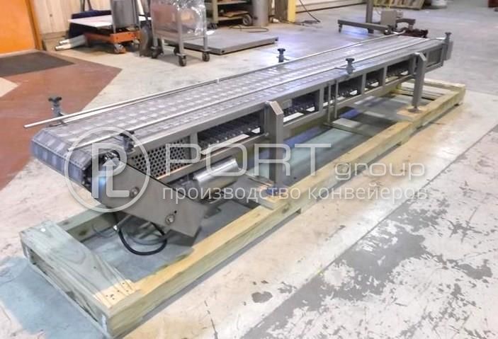 Все фото (6)Конвейер с модульной пластиковой лентой для лотков с овощами
