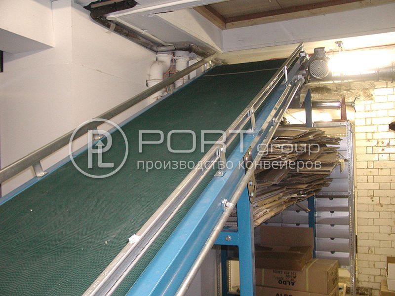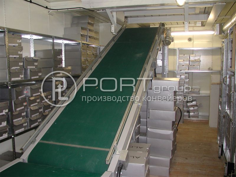 Все фото (5)Наклонный конвейер для транспортировки коробок на складе хранения