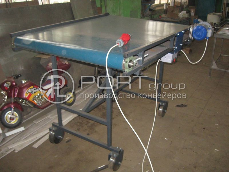 Ленточный конвейер для транспортировки коробок с мебелью весом 25 кг
