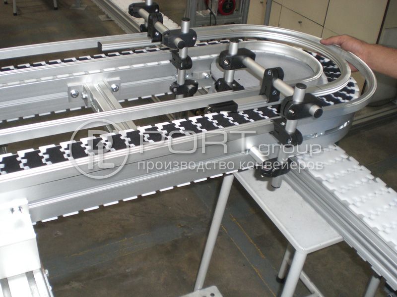 Данные пластинчатые конвейеры используются для линий розлива в различных отраслях промышленности. С их помощью обеспечивается изменение траектории движения штучных грузов.