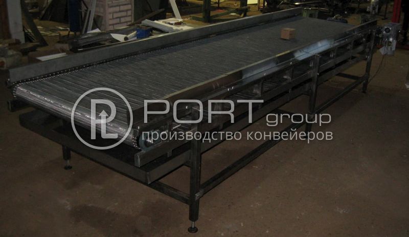 Изготовлен и отправлен заказчику сетчатый транспортер из нержавеющей стали для охлаждения ветчины. Длина 4000 мм, ширина 1000 мм, высота 750 мм с регулировкой. Диапазон регулировки скорости от 0.01 до 3 м/мин. Материал рамы, опор, бортов, валов, цепи, поддона, шкафа управления и крепежа – нержавеющая сталь Aisi 304 (пищевое производство, все моют химией).