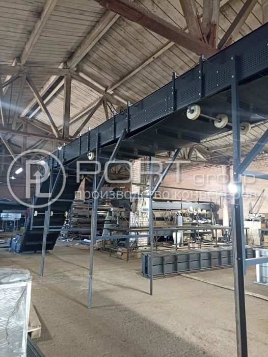 16.08.22 Для компании "Армада-Сервис" из г. Пермь изготовлен Z-образный конвейер длиной 13,500 м и рабочей шириной ленты 800 мм. С помощью конвейера будет перемещаться мусор (ТБО). Нижняя часть располагается в приямке (движение ленты по настилу), подъем и верхний участок - по роликам. Лента резинотканевая, толщина 5 мм, с перегородками высотой 5 мм, температура эксплуатации -30…+80ºС. Лента автоматически очищается скребком. Борта съемные, с гибкой отбортовкой для предотвращения попадания мелкого мусора под ленту. Бока рамы зашиты перфорированным листом толщиной 1.5 мм. На раме расположена кнопка аварийной остановки.